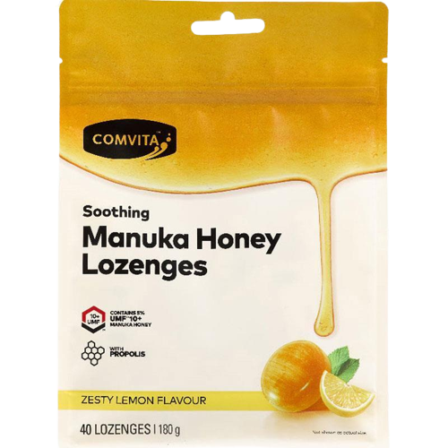 Comvita™ Manuka Honey Lozenges with Propolis combine the soothing qualities of UMF™ Manuka Honey with the power of Propolis. Zesty Lemon flavour. New Zealand Manuka has long been valued for its health-maintaining effects and Manuka Honey is gaining worldwide recognition for its unique properties. Propolis contains high levels of bioflavonoids.