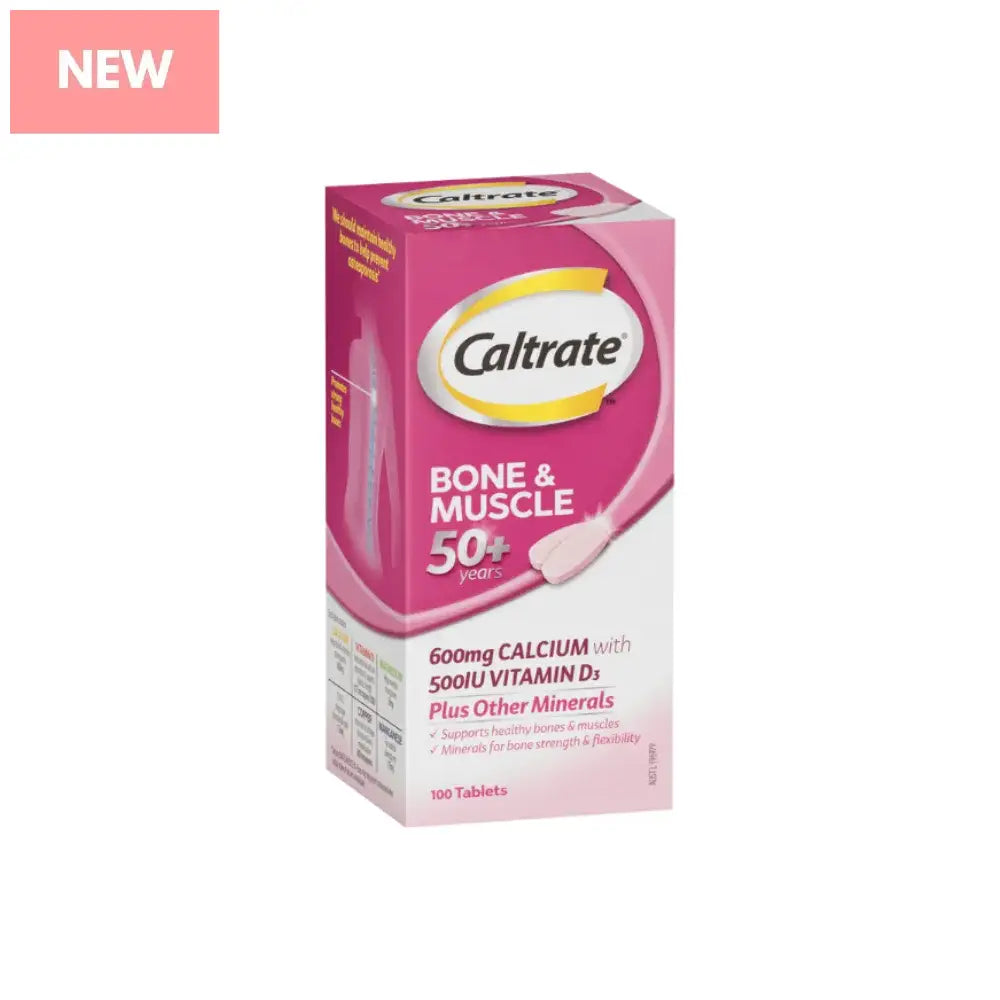 Caltrate Bone Muscle 50+ is specially formulated to support the bone health needs of people over 50 with an increased daily dose of calcium, compared to Caltrate Bone Muscle. Caltrate Bone Muscle also contains 4 other minerals to support healthy bones.