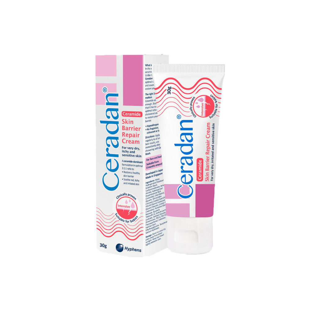Ceradan Skin Barrier Repair Cream is a scientifically formulated ceramide-dominant moisturizer in a 3:1:1 ratio of essential skin lipids (ceramide, cholesterol, and free fatty acids). It is clinically proven to rebuild the skin protective barrier, reduce symptoms, and reduce the incidence of flares. Suitable for eczema-prone skin, dry skin, and sensitive skin