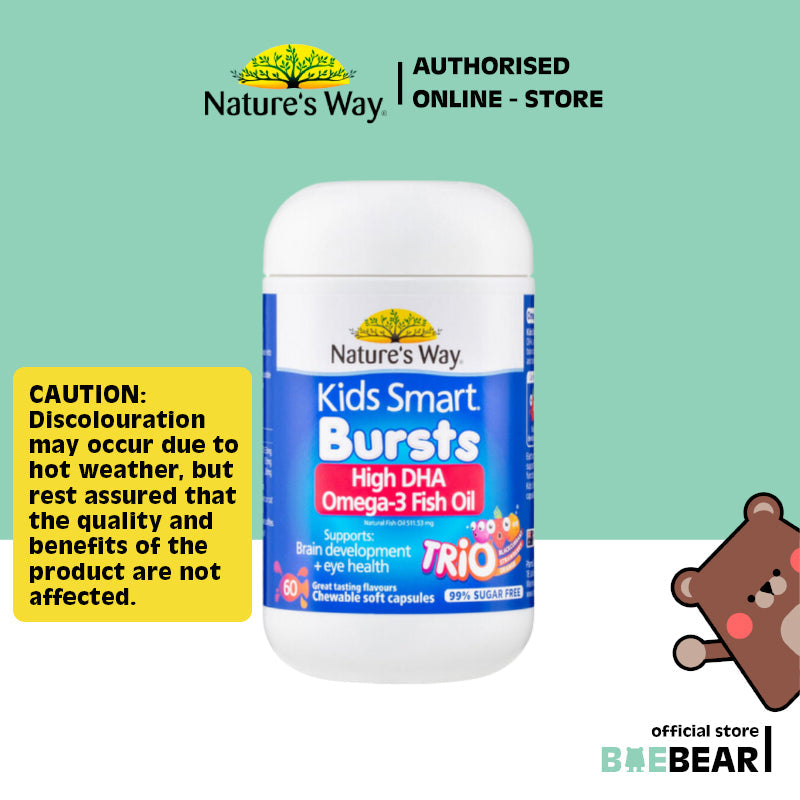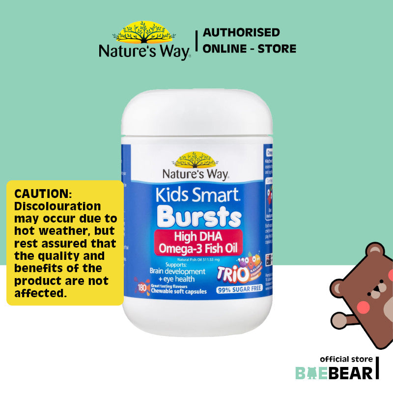 Nature's Way Kids Smart Bursts High DHA Omega 3 Fish Oil Tri, 60 | 180 capsules