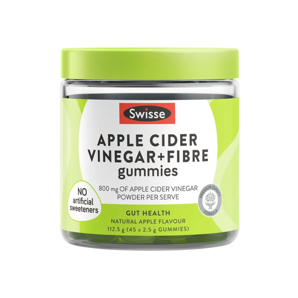 Swisse Apple Cider Vinegar + Fibre Gummies offer a convenient way to enjoy the benefits of apple cider vinegar in a great tasting gummy. They're formulated with 40mg of acetic acid and 800mg of apple cider vinegar per serve, plus a source of fibre.