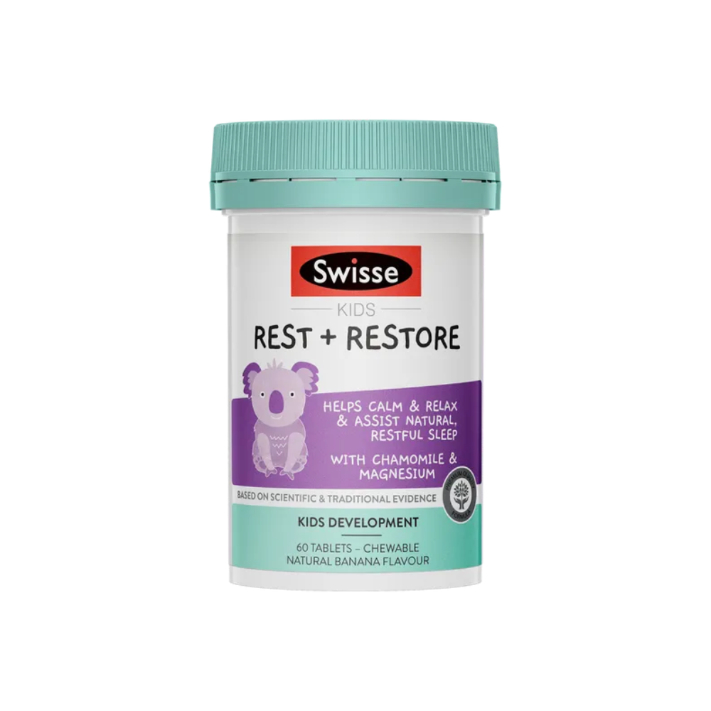 Swisse Kids Rest + Restore helps support natural, restful sleep in kids, and helps calm and relax the mind. This premium quality formula comes in a convenient, chewable tablet.