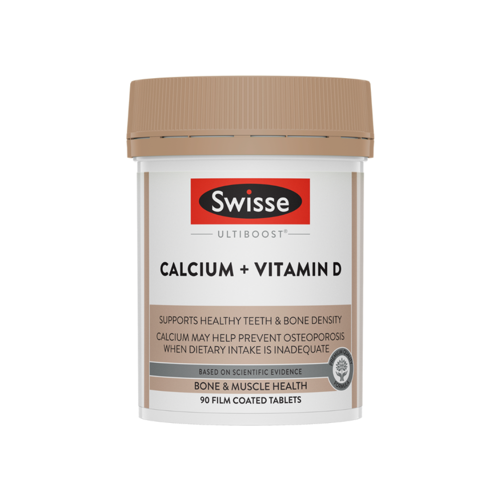 Swisse Ultiboost Calcium + Vitamin D is a premium quality formula to help support healthy teeth and bone density, and provide a source of calcium which may assist in the prevention of osteoporosis when dietary intake is inadequate.