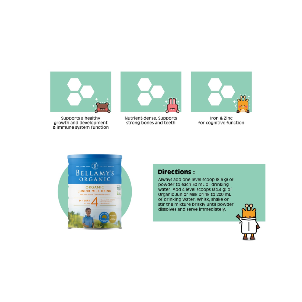 [Bundle of 3] Bellamy's Junior Milk Drink Formula Step 4, 900g