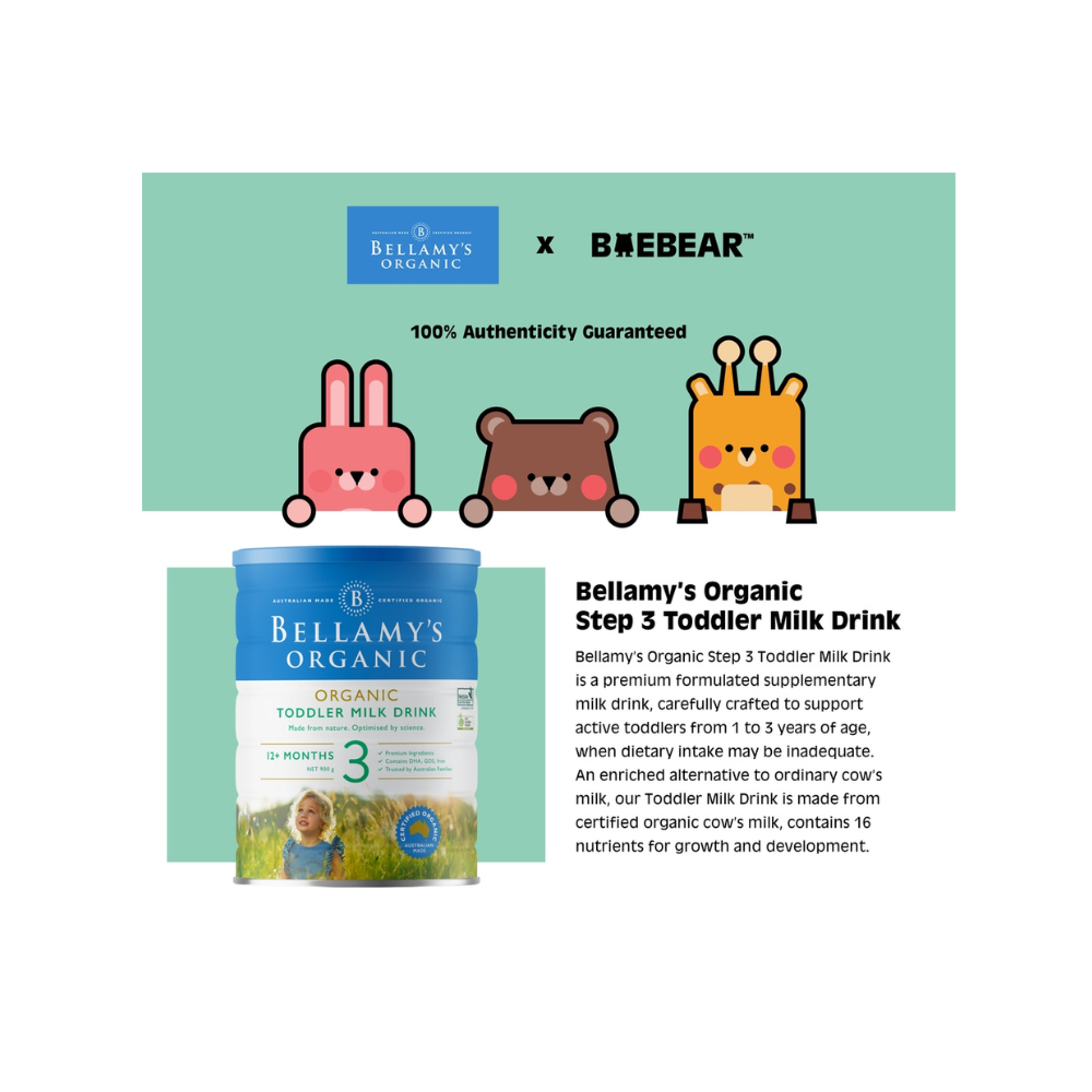 [Bundle of 3] Bellamy's Organic Toddler Milk Drink Step 3, 900g
