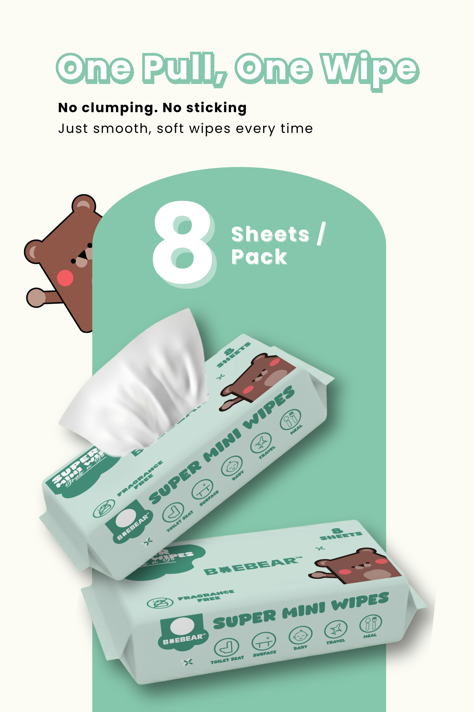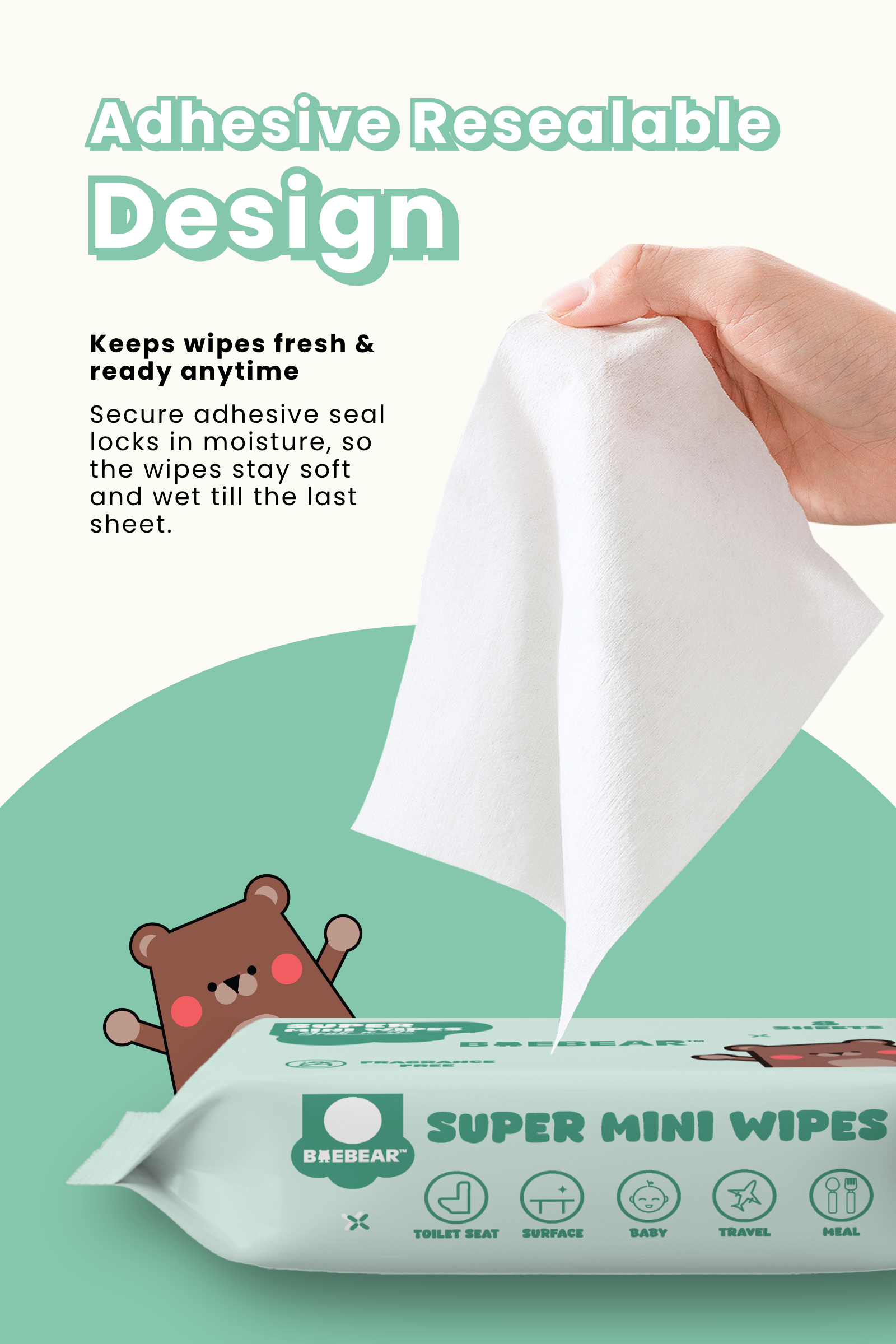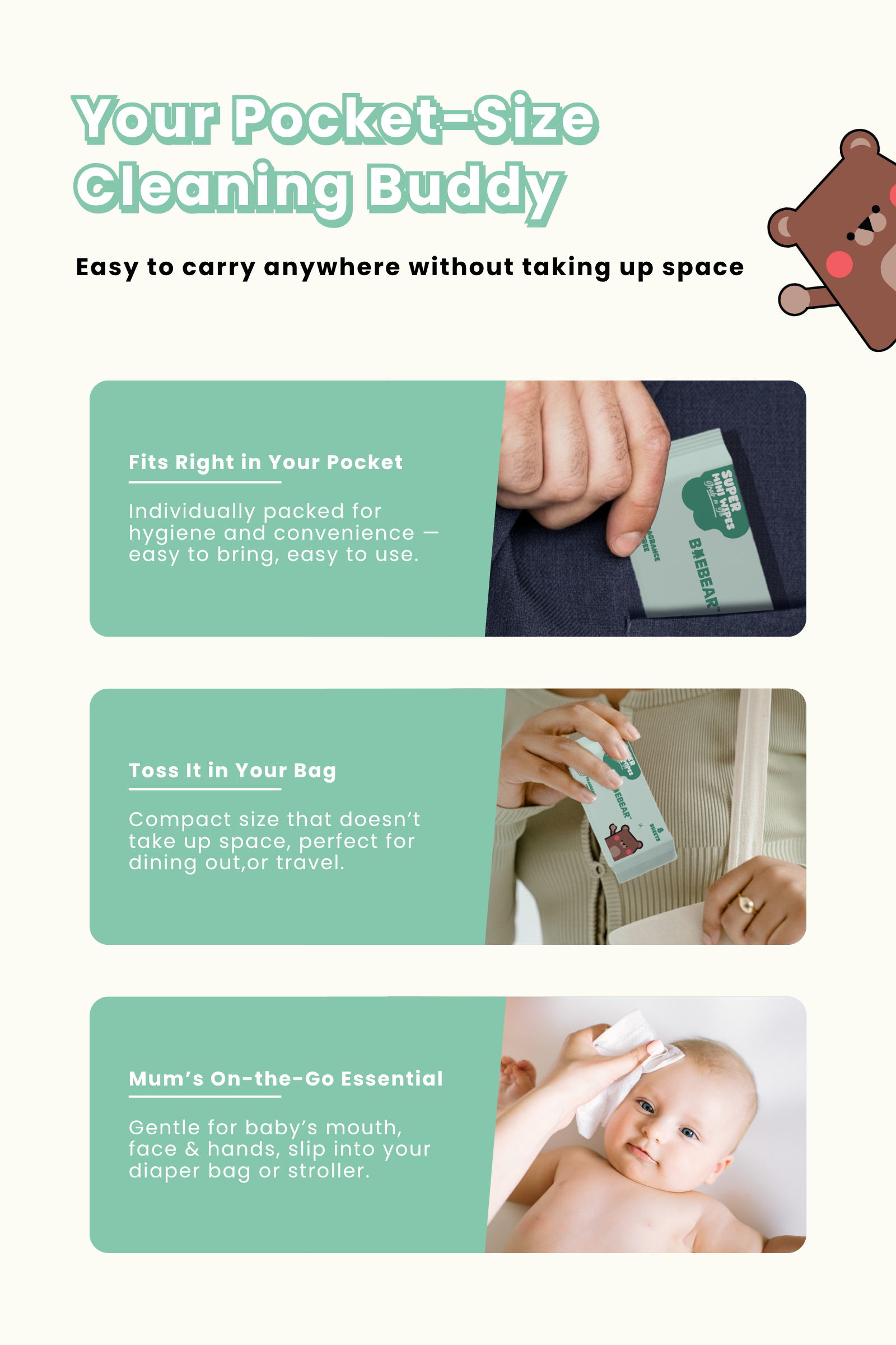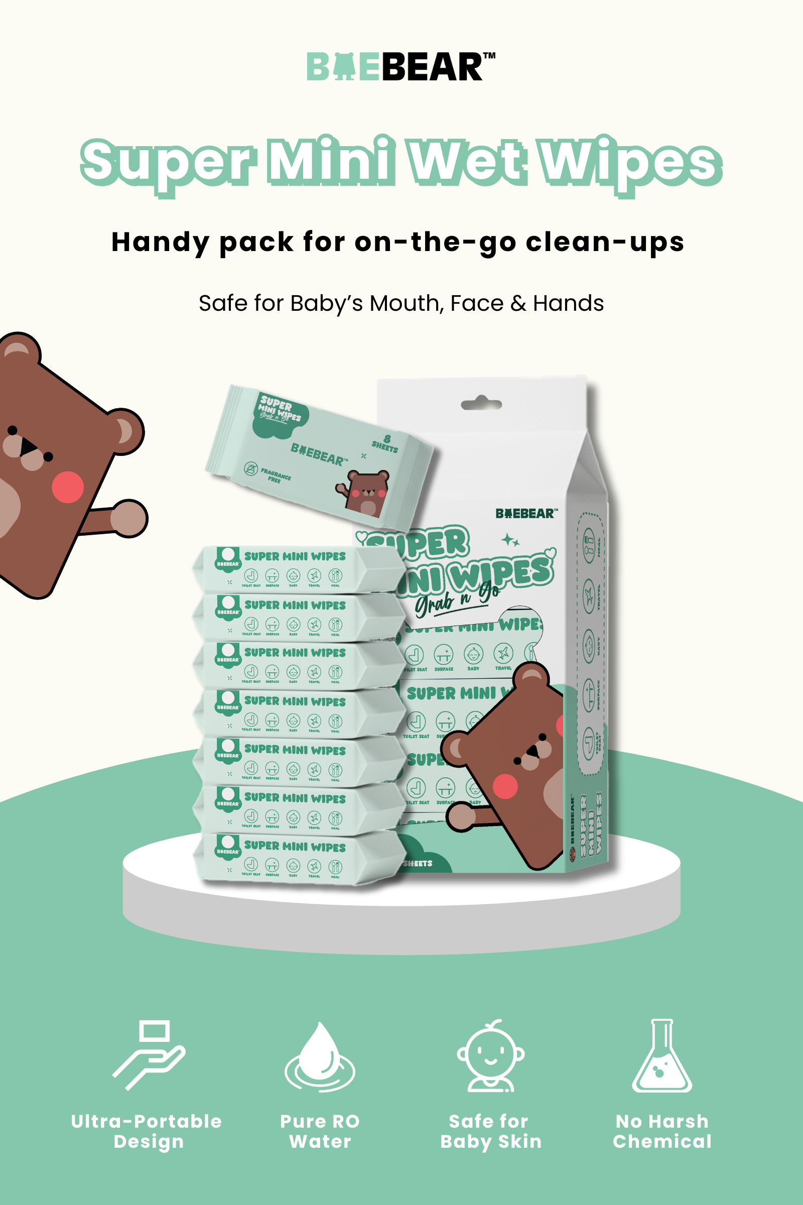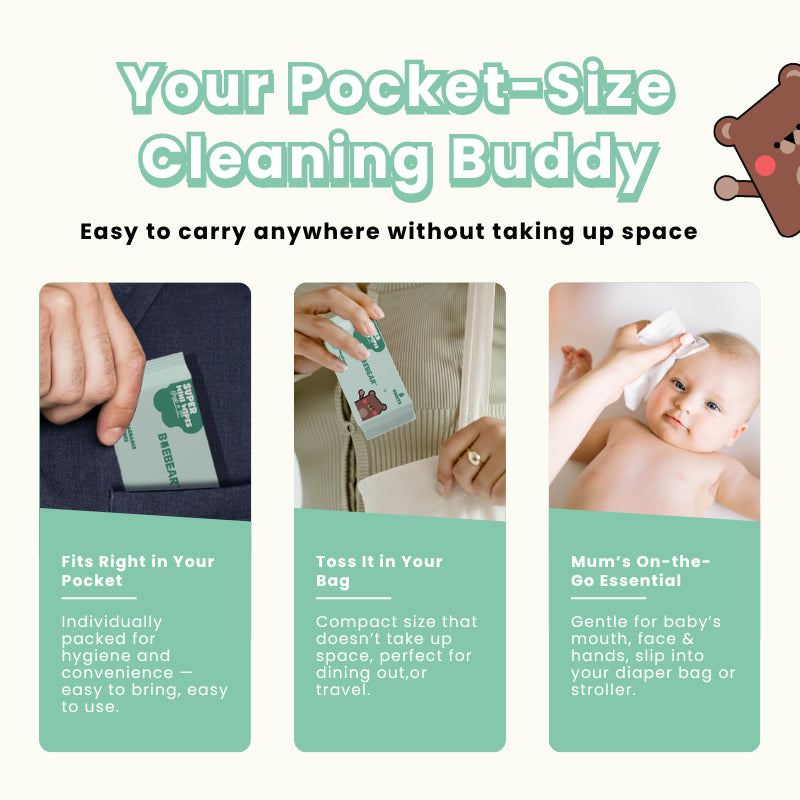 Baebear Mini Baby Wet Wipes, 64 Sheets, Soft Wet Tissue, Hand, Mouth, Body