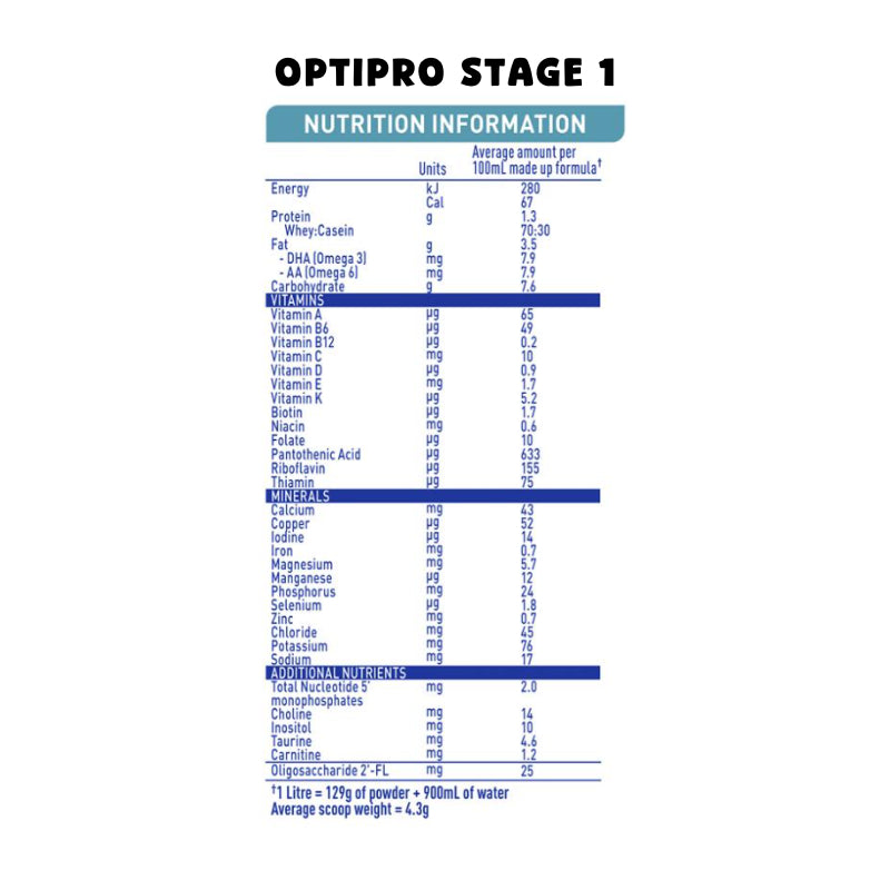NAN OPTIPRO 1 is a premium starter infant formula that is nutritionally complete for healthy infants from birth. Infants over 6 months of age will need additional nourishment.
