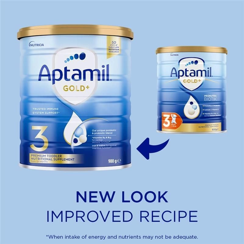 Backed by 50 years of early life nutrition research Aptamil® Gold+ 3, our premium toddler nutritional supplement is suitable for children from 1 year old. Our scientifically tailored formulation provides trusted immune system support with 16 essential vitamins and minerals for normal growth and development in children.