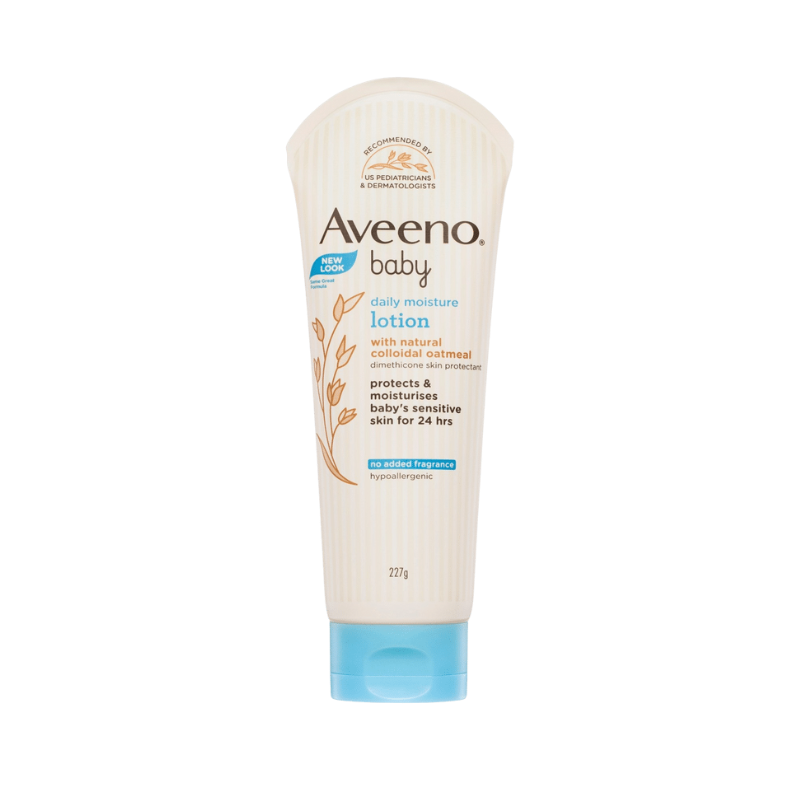 Aveeno Baby Daily Lotion contains natural colloidal oatmeal and rich emollients to soothe and moisturize your baby's delicate, dry skin. This naturally non-greasy formula absorbs quickly and is deeply moisturizing. This baby lotion is hypoallergic and fragrance free, so it won't irritate sensitive skin.