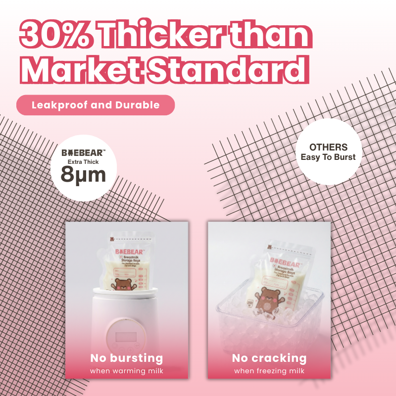 Baebear Breast Milk Storage Bags 250ml, 30 Presterilized Bags | Double Zip Lock Bags