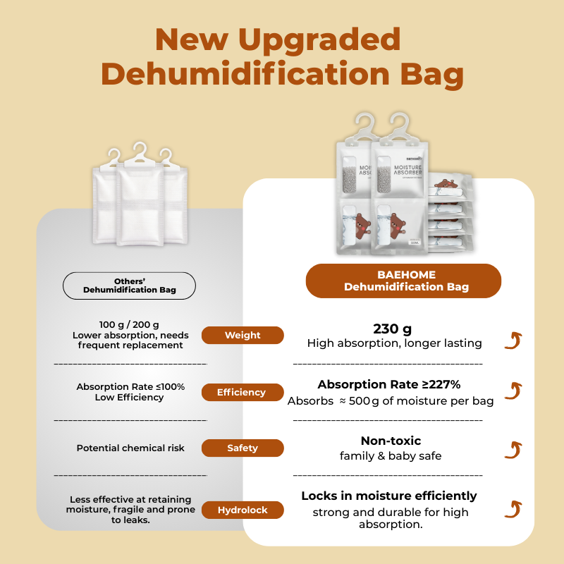 BAEHOME Hanging Dehumidifier Bag, 230g available in original and anti-odour charcoal