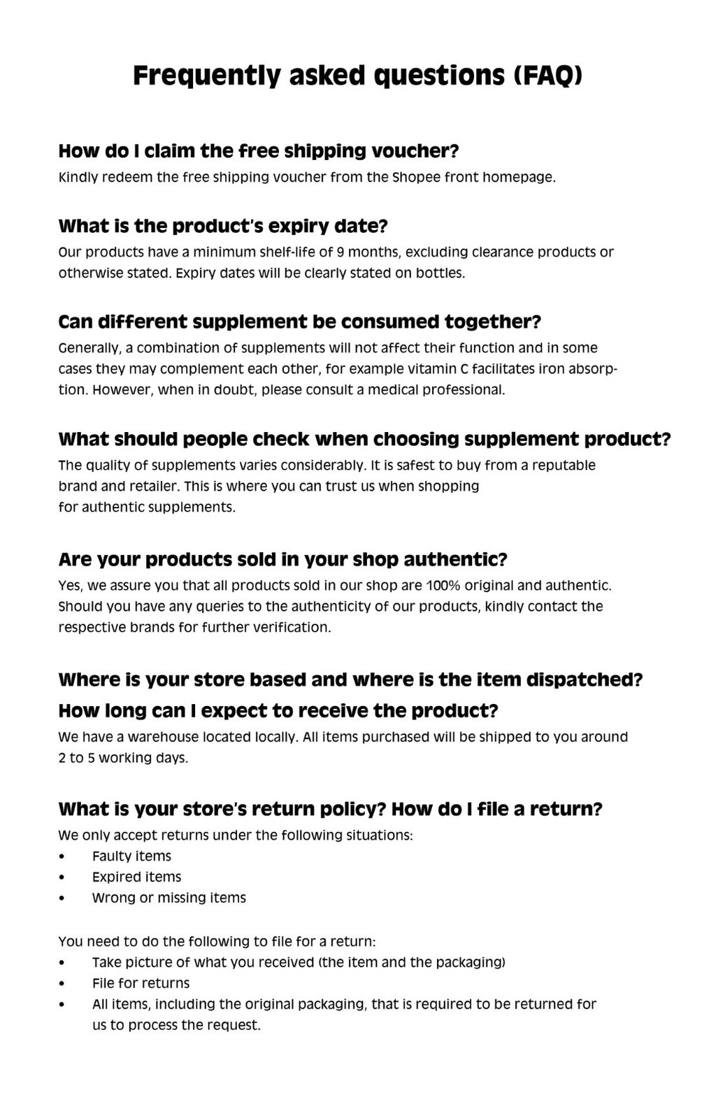 We have a warehouse located locally. All items purchased will be shipped to you in around 2 to 5 working days.