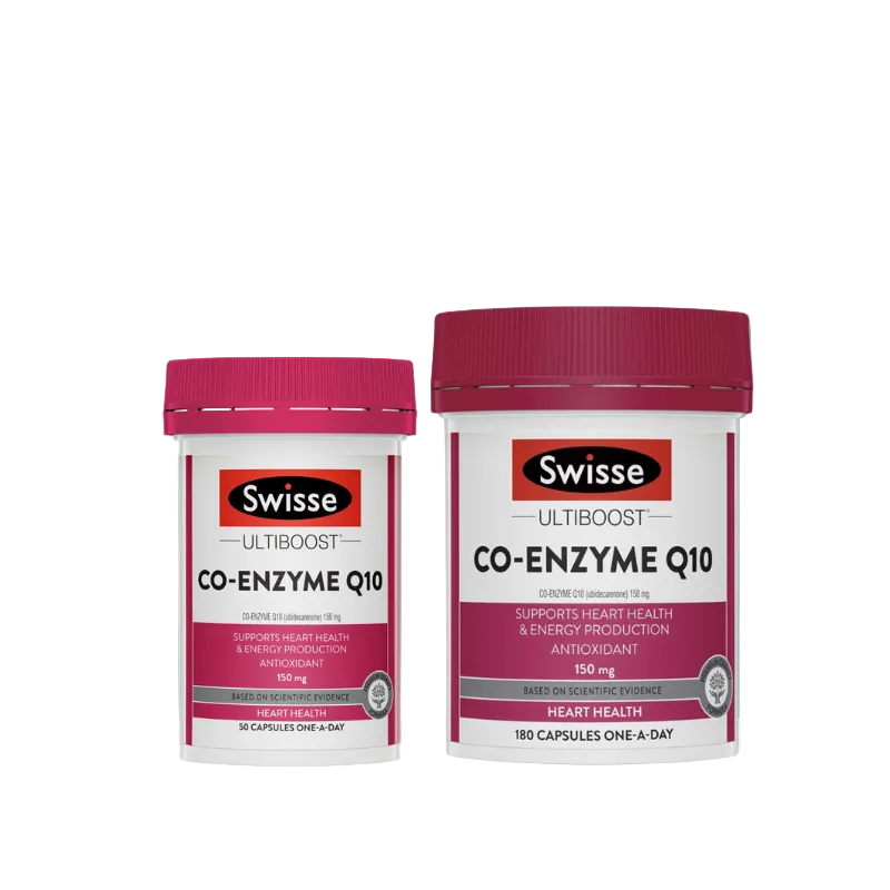 Swisse Ultiboost Co-Enzyme Q10 Swisse Ultiboost Co-Enzyme Q10 supports heart health and is a rich source of antioxidants. As well as supporting cardiovascular health, it assists with energy production and healthy aging.
