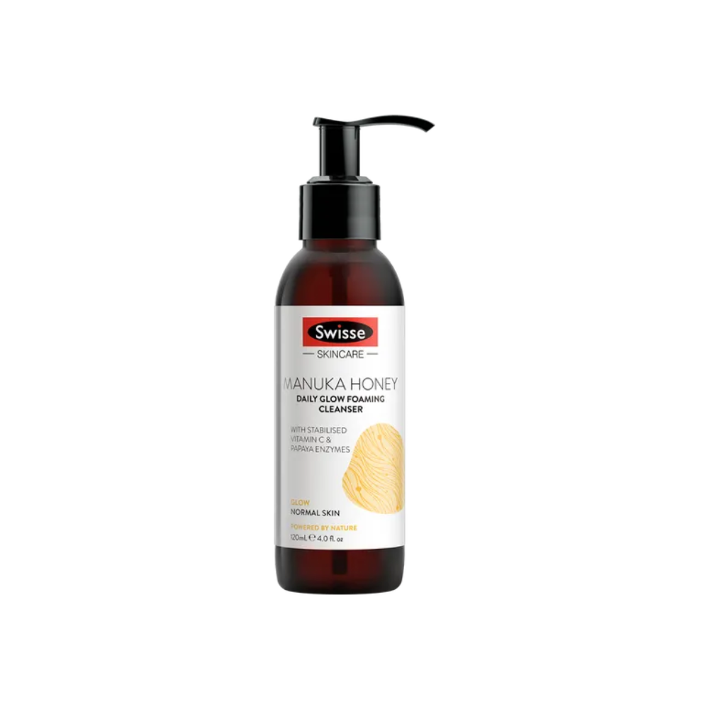 Swisse Manuka Honey Daily Glow Foaming Cleanser features stabilised Vitamin C and Papaya Enzymes. This refreshing and radiance-boosting cleanser delivers intense moisture and a gentle clean for soft, dewy and glowing skin.